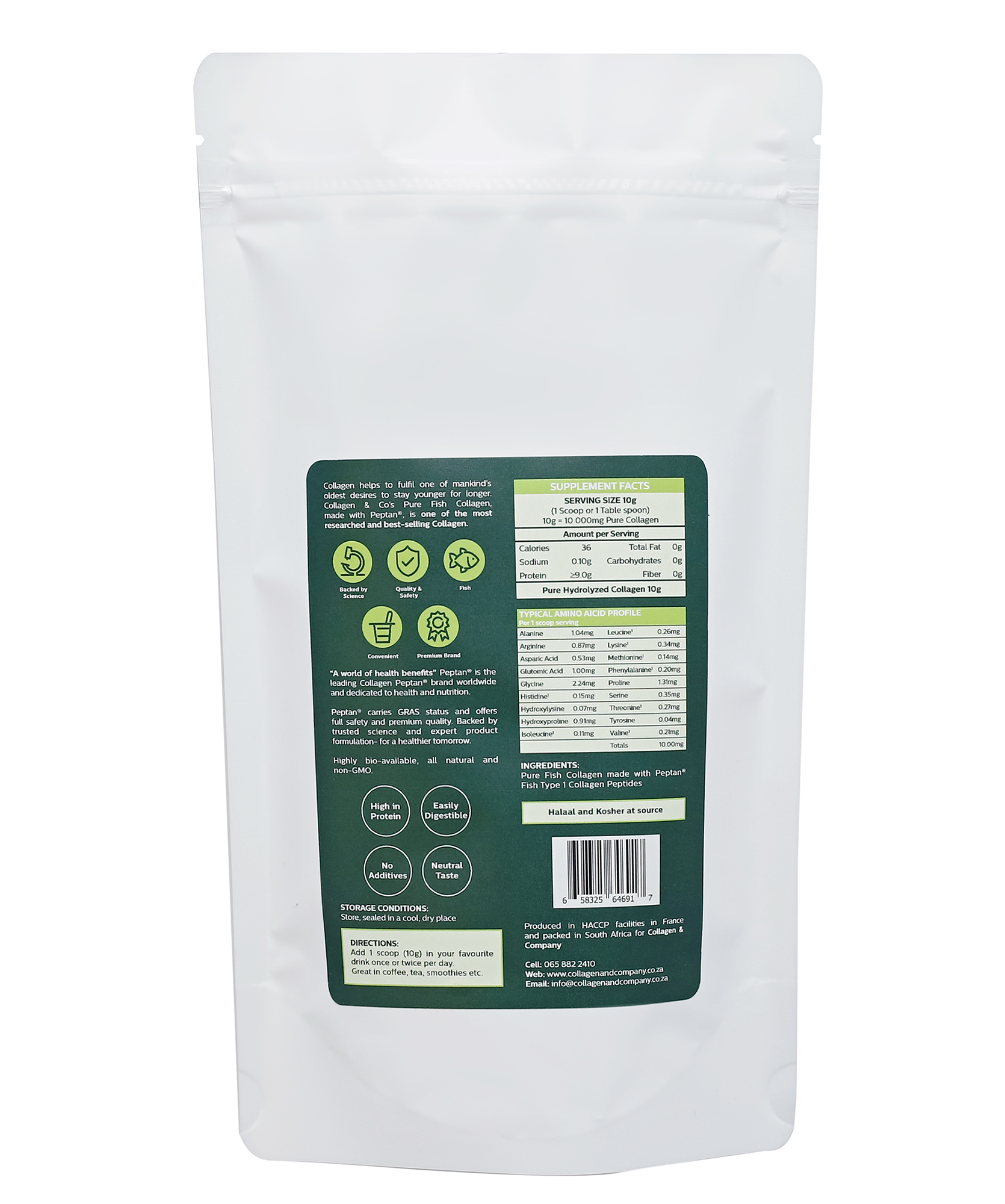 Collagen and Company’s commitment to excellence shines through in every aspect of our Pure Fish Collagen Peptides made with Peptan (F) Type 1 Collagen Peptides. We prioritize quality, potency, and results to ensure you receive a premium product that exceeds your expectations. Each batch undergoes rigorous testing and is manufactured in accordance with strict quality standards, guaranteeing the highest level of purity and efficacy.
